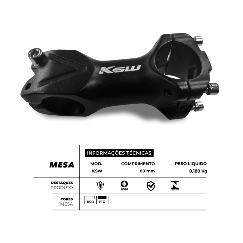 Peso: Mesa – 0,180kg / Guidão – 0,310kg / Abraçadeira – 0,040kg